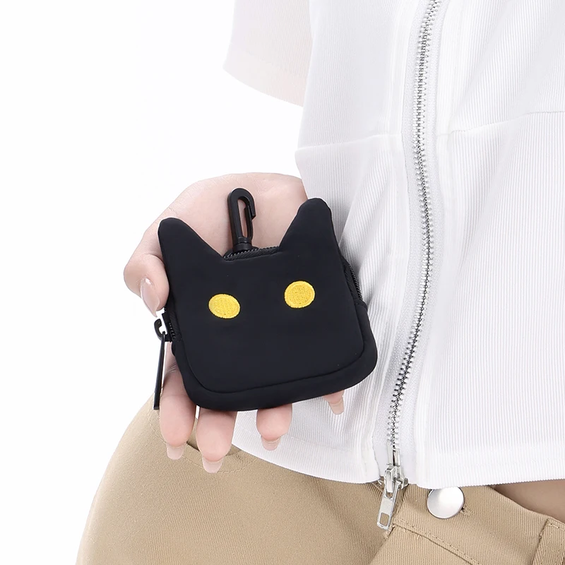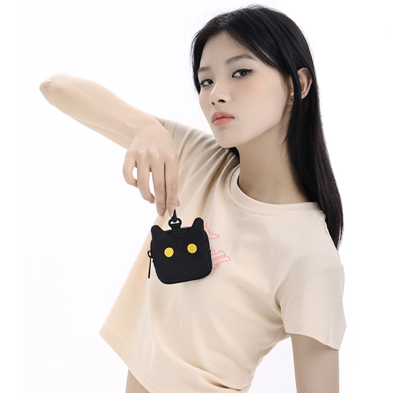 NOXXON Mini Coin Bag Custom Embroidery Small Cat Shaped Nylon Bag Cute Key Case Coin Purse for Everyday Life